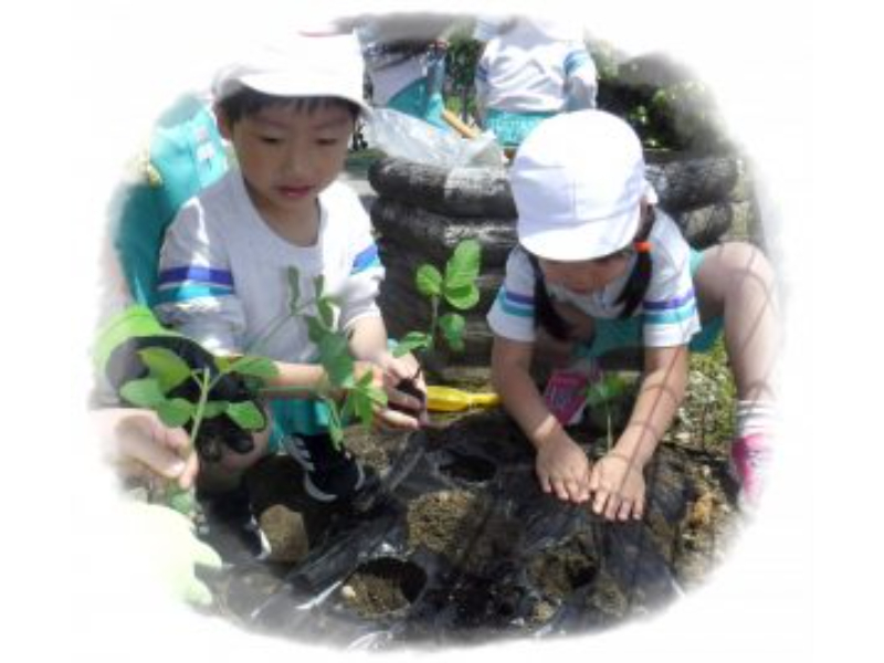 今日は枝豆の収穫!年長組の子供たちで枝から豆のさやをとって、みんなで数えてみると今年は209個の枝豆が実りました