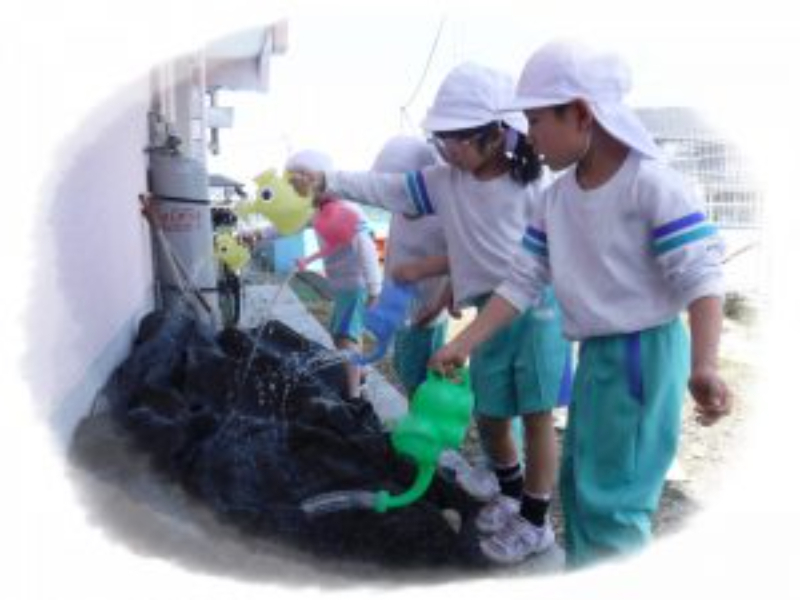 年中組の子供たちが5月に種を植えたひまわり。毎日水やりをしながら「芽が出た!」「葉っぱが大きくなってる!」と大切に見守り育ててきました。