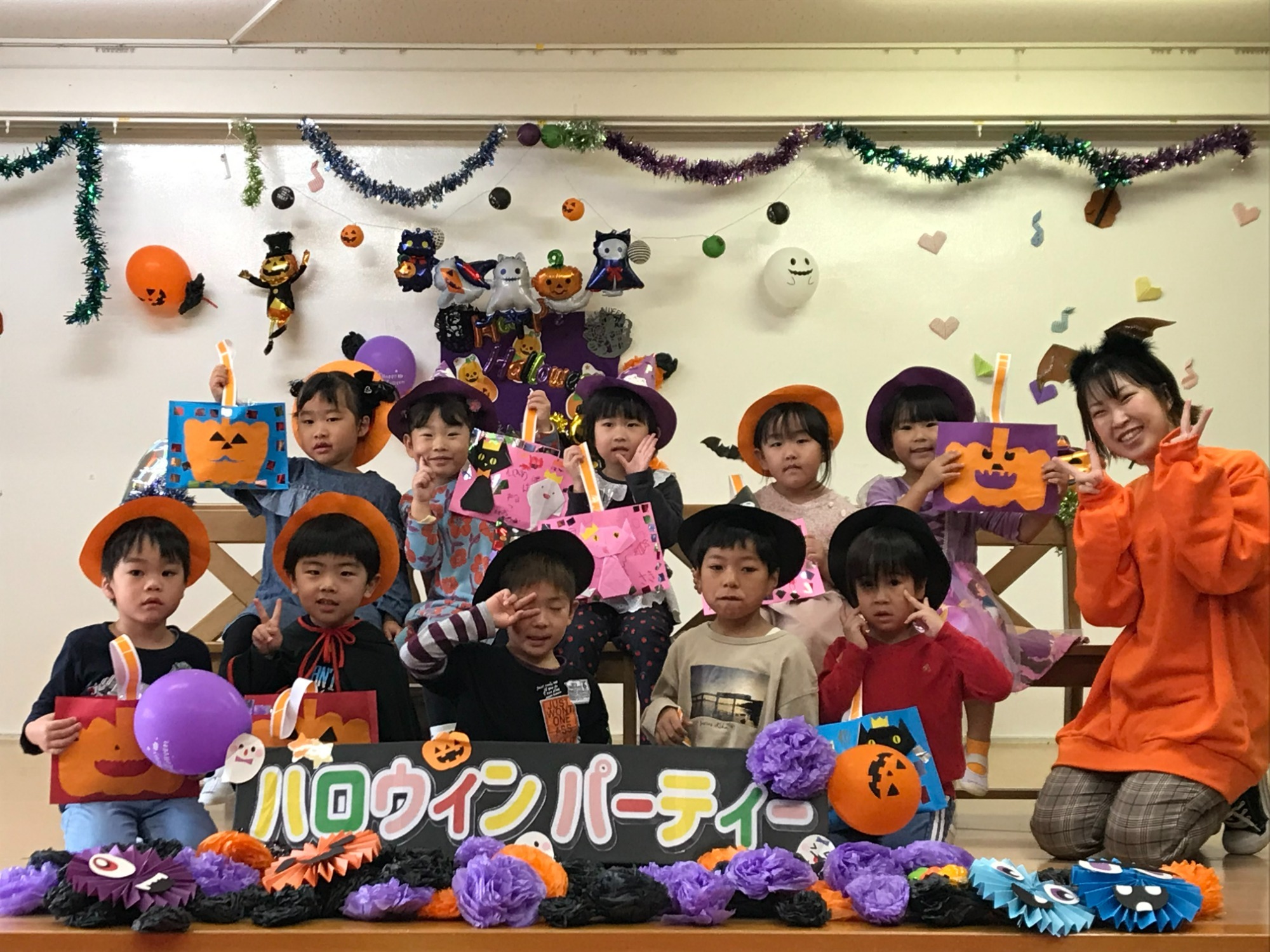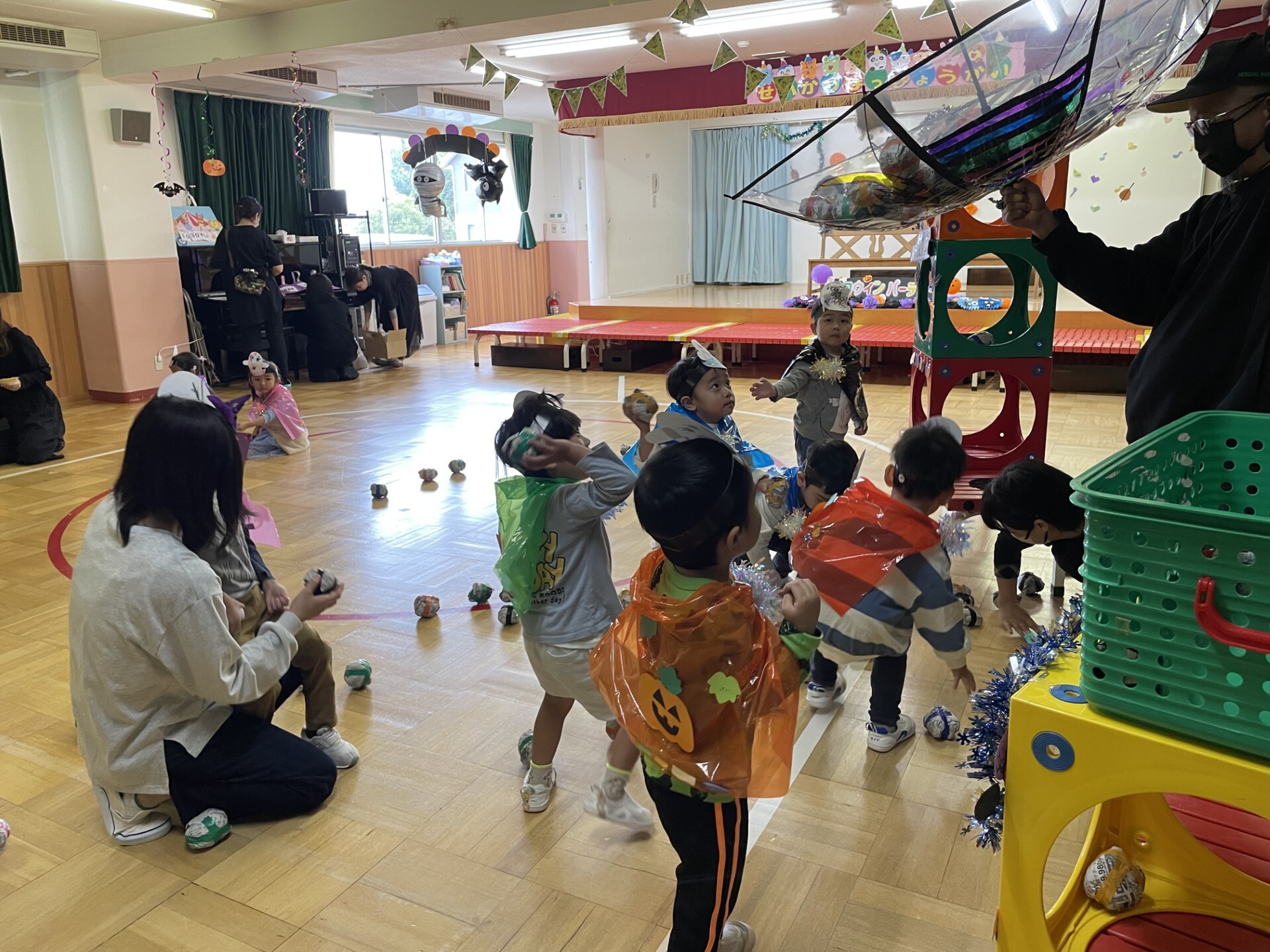 遊戯室を役員のお父さんお母さんたちがハロウィン会場に変身させてくださいました