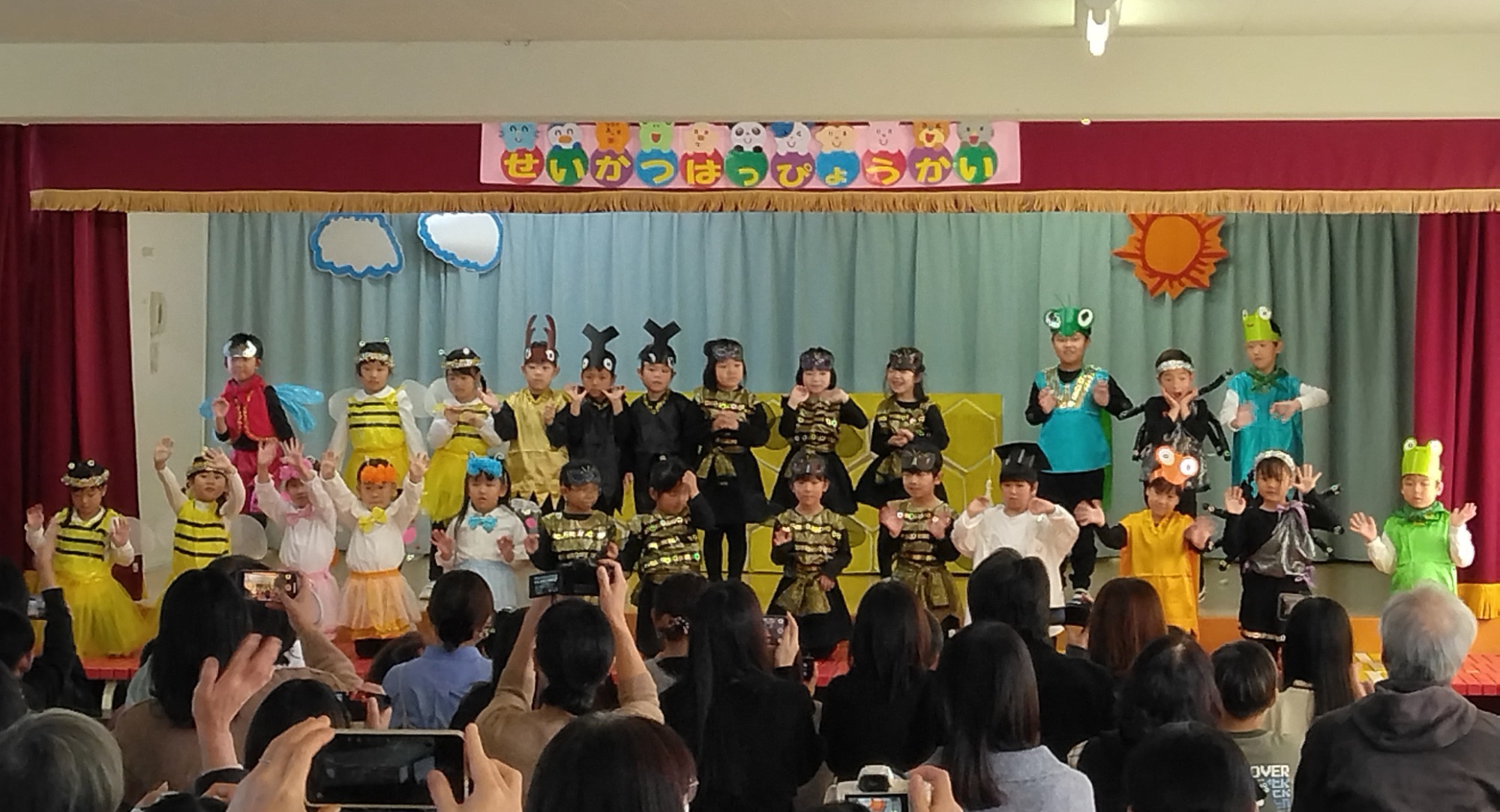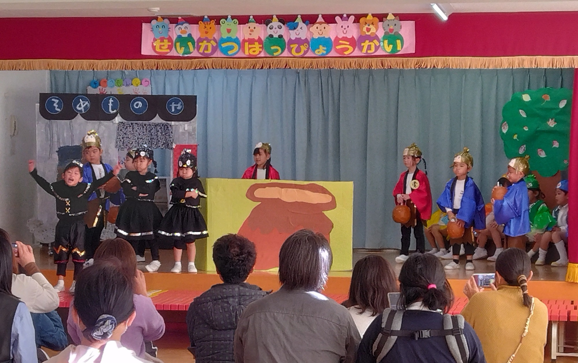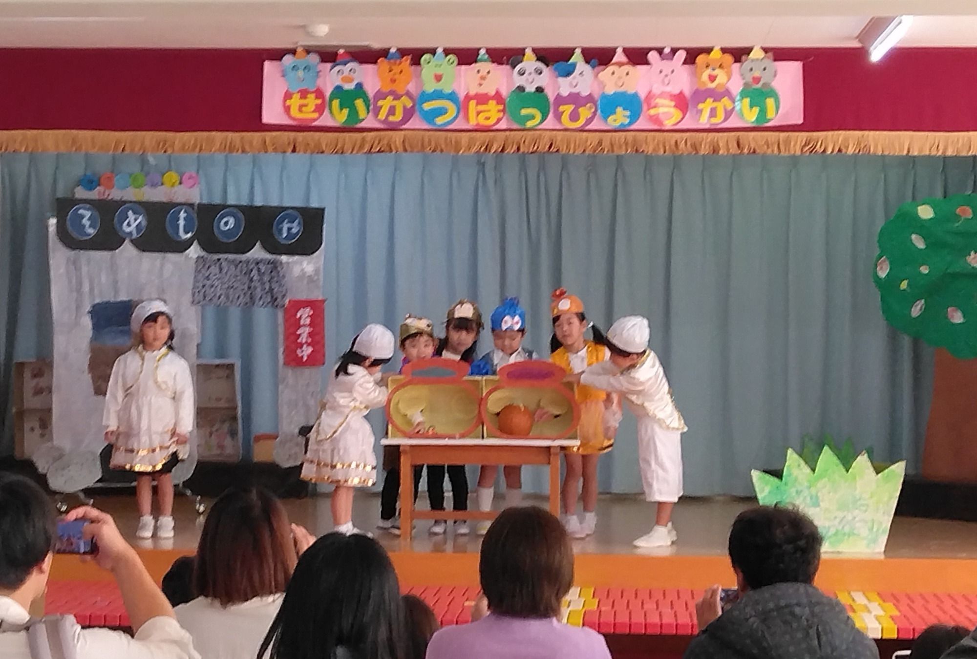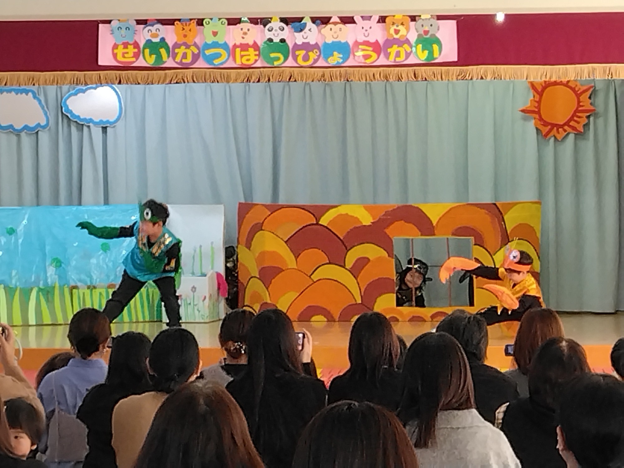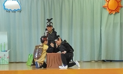 劇遊びは、子供たちの普段の遊びや生活からヒントをもらい、それぞれクラスの個性が光っていて、楽しみながら演じている様子が印象的でした。