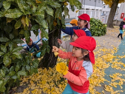 幼稚園のシンボルともいえる大きなイチョウの木がきれいに色づきました。