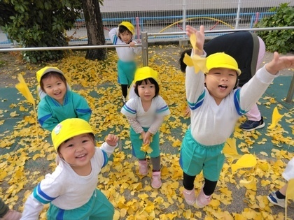 子どもたちは、葉っぱを集めたり上にとばしたりしながら秋ならではの遊びを楽しみました♪