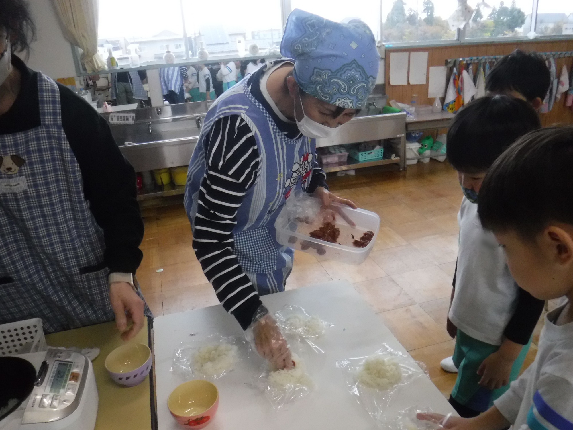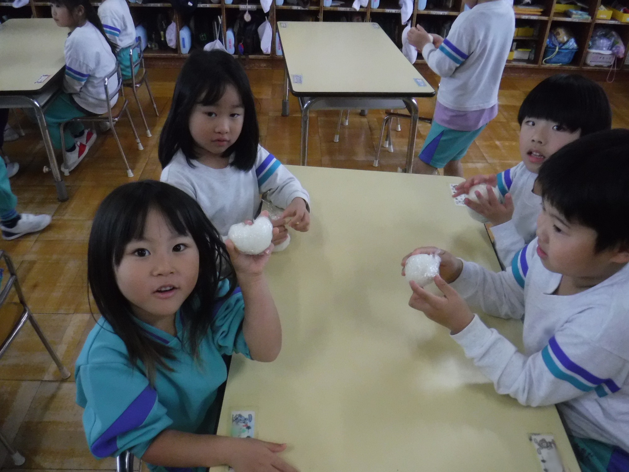 「おかわり~!」「美味しくてほっぺたおちちゃう~!」という声も聞こえてきて、自分で握ったおにぎりに大満足の様子でした。