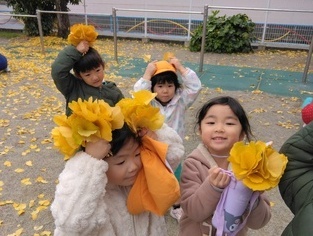 落ち葉を集めてお花を作ろうっと♪