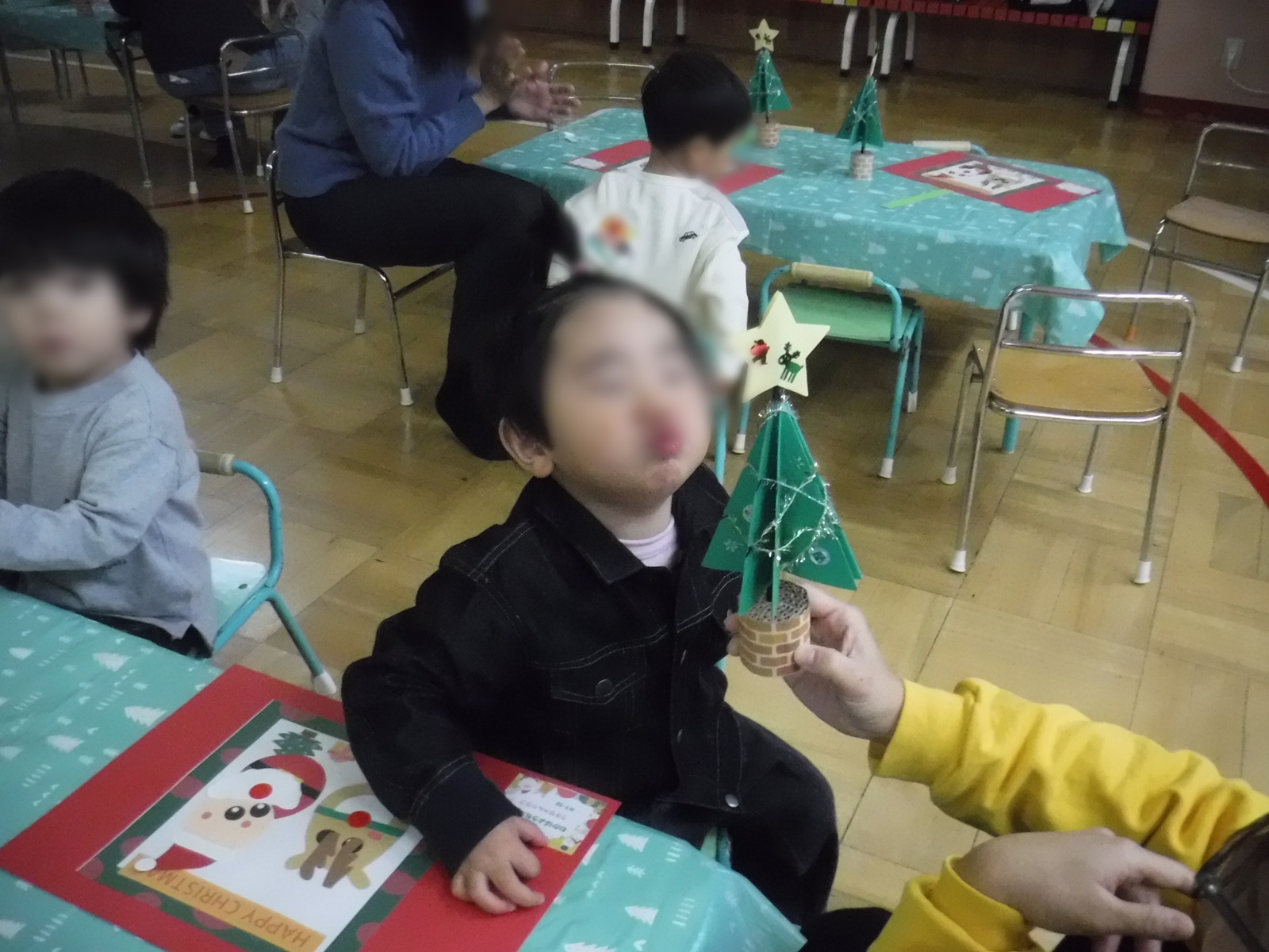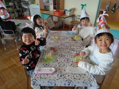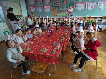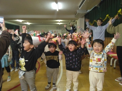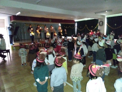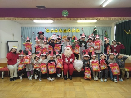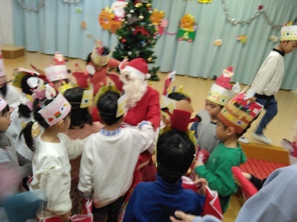 幼稚園のクリスマス会がありました。帽子を作って楽しみにしていたこの日!サンタさんが幼稚園に来てくれました!嬉しい楽しいことがいっぱいの1日になりました。