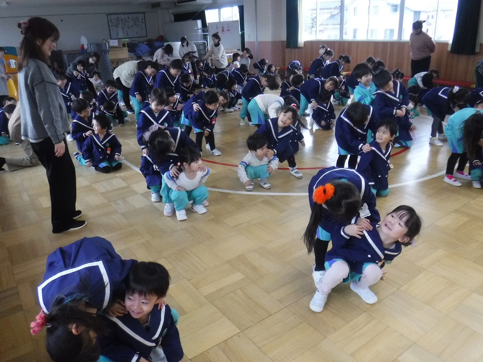 2年生以上の子は、懐かしい幼稚園と友達と先生たちと再会。短い時間でしたが楽しいひと時を過ごしました。