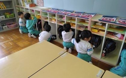 しっかり前を向いて園長先生のお話を聞いています