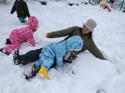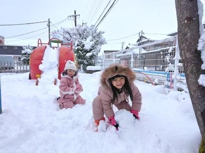 子どもたち念願の雪がやっと積もり、雪遊びができるようになりました