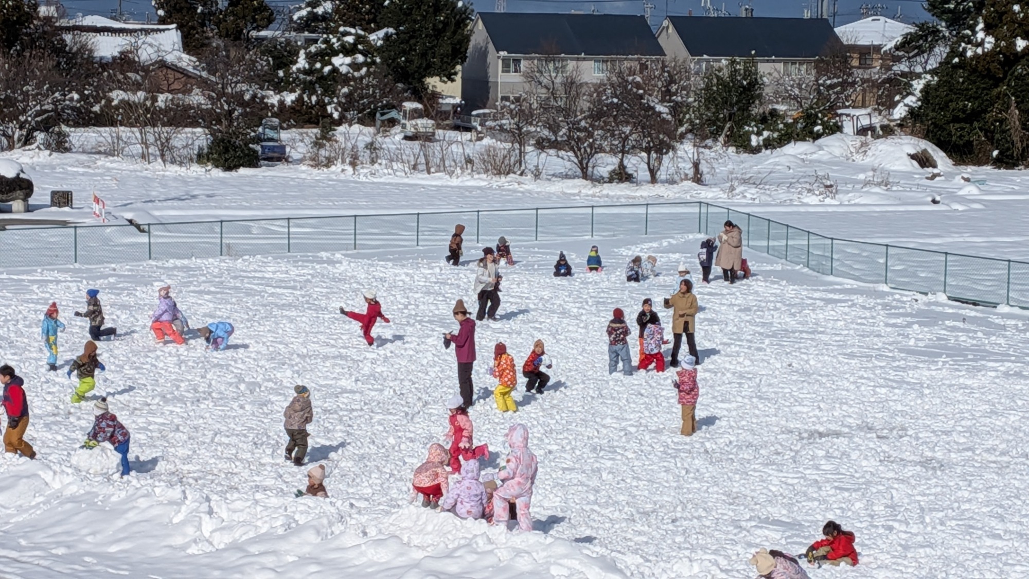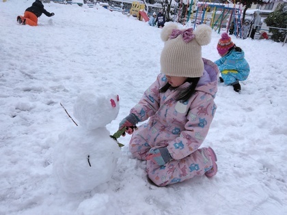 大きな雪だるまを作ったり、雪合戦を楽しんでいます♪