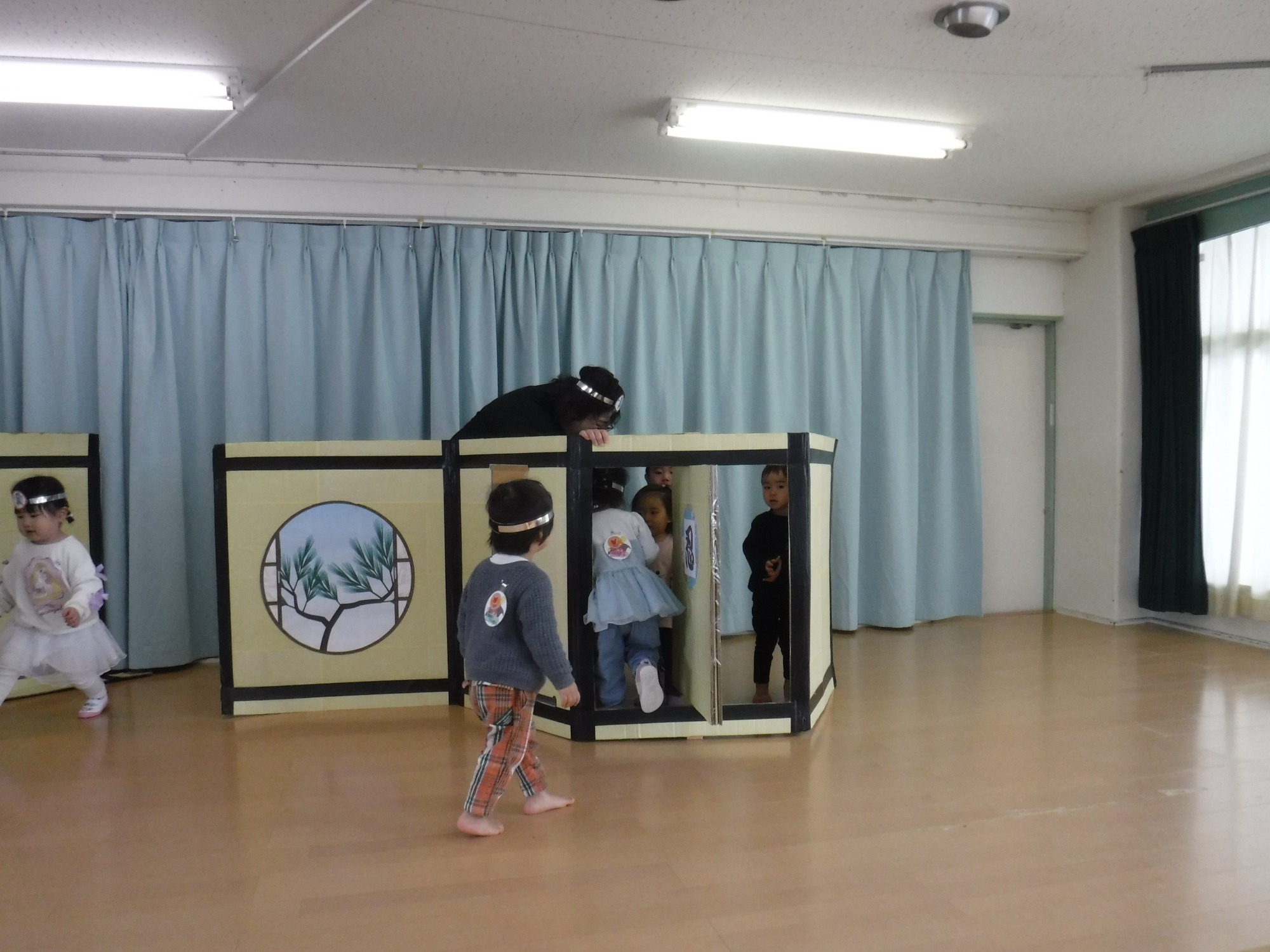 みんなで忍者の修行に挑戦!「し・し・しのびあし」の遊び歌に合わせて忍術の練習