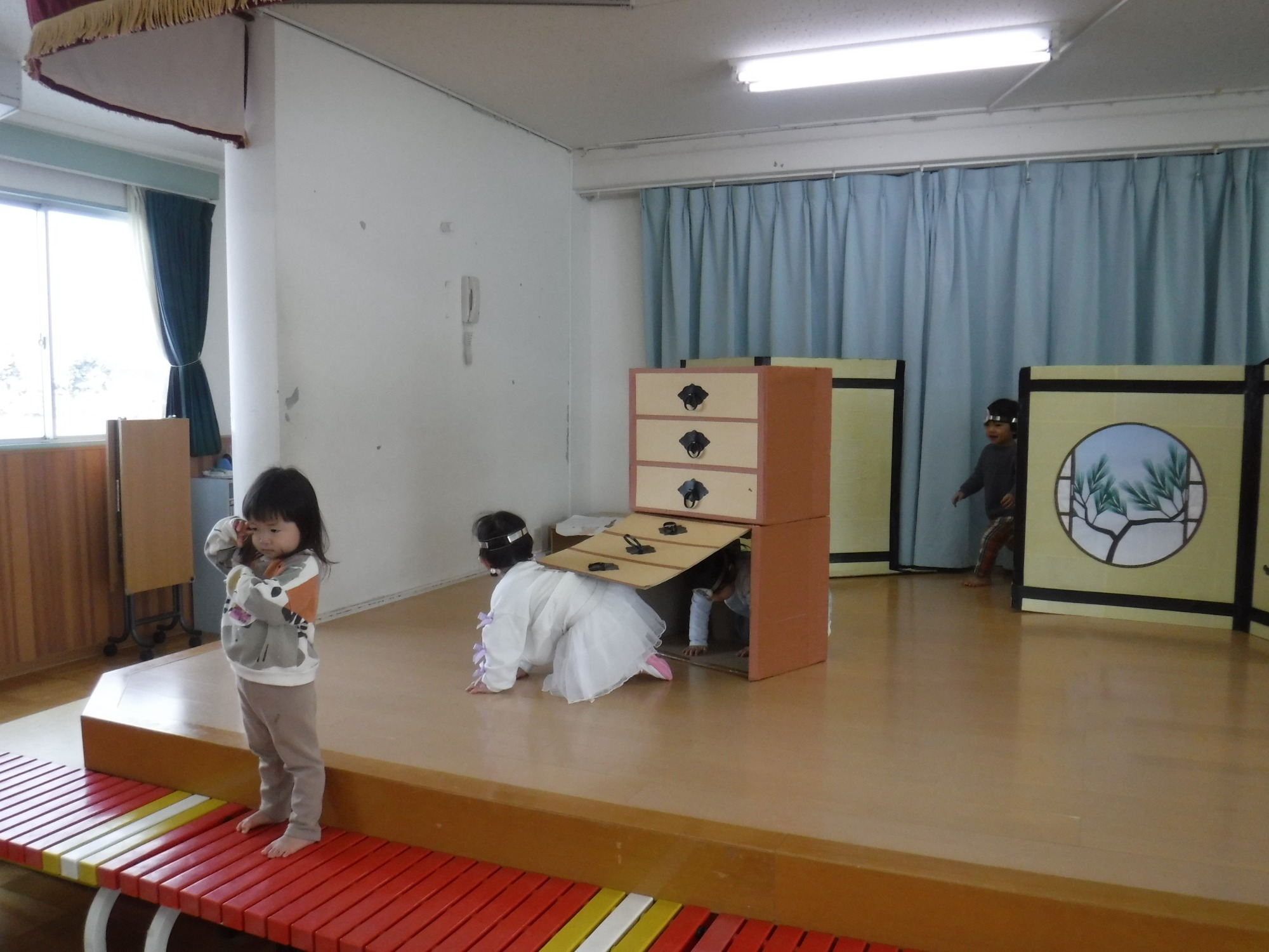 遊戯室のいろんな場所にいる