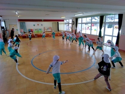 リズムに合わせて体を動かします
